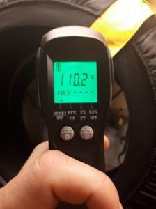 More specific, the rear reading was 108C (227F) and the generator ran non-stop. A watt meter confirmed that the warmers never switched off. Another local racer friend had similar behavior on his set of Moto-D Pro Dual temp warmers (set to high) that drew power non-stop the entire day as well, unless they were set to low. The Moto-D warmers I was using had a 04/18 date tag on the inside, although I was unable to get confirmation from the manufacturer when they were actually made.