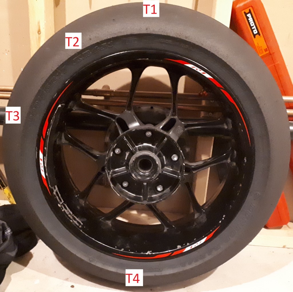 - Another KR448 slick (1.5 trackdays on it, 0.5 days left), same tire for all tests